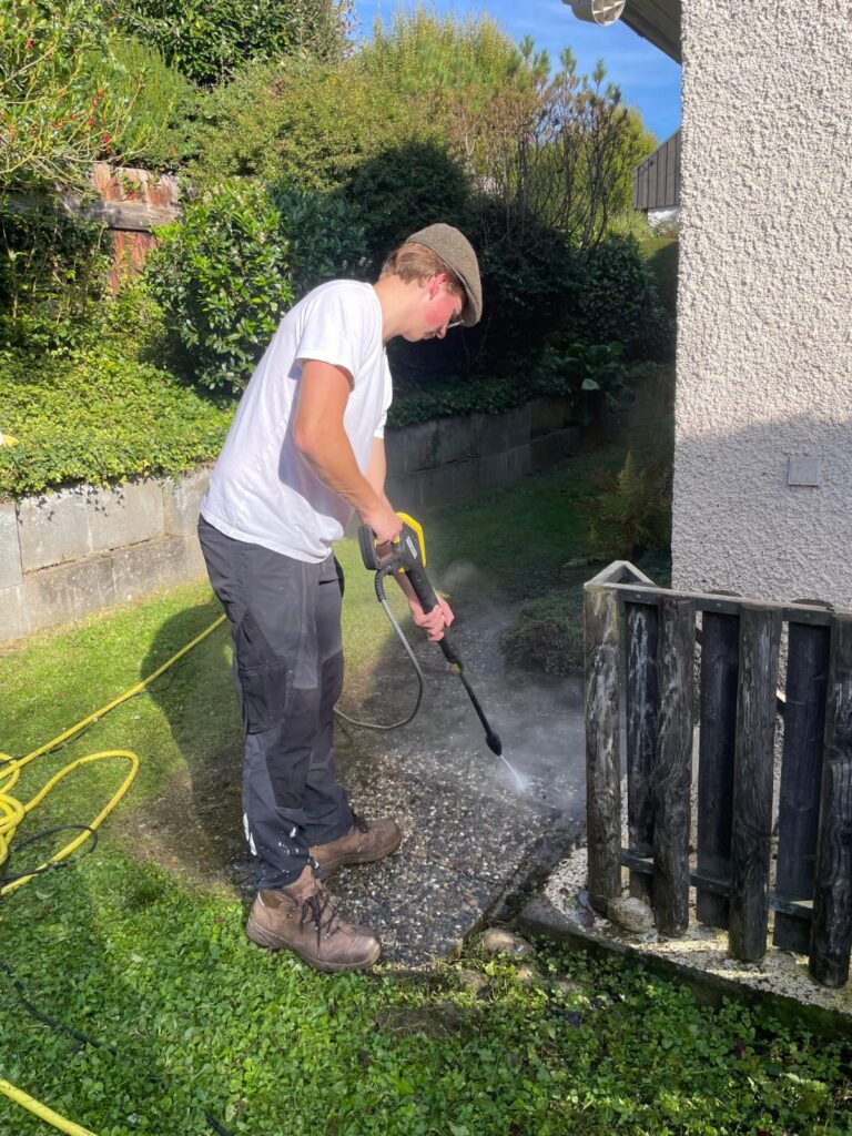 Mit unserem Hochdruckreiniger säubern wir Terrassen, Einfahrt, Gehwege oder Steinflächen gründlich – Moos, Algen und Schmutz verschwinden spurlos.